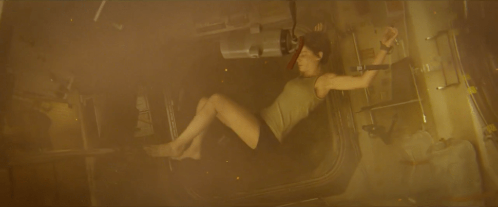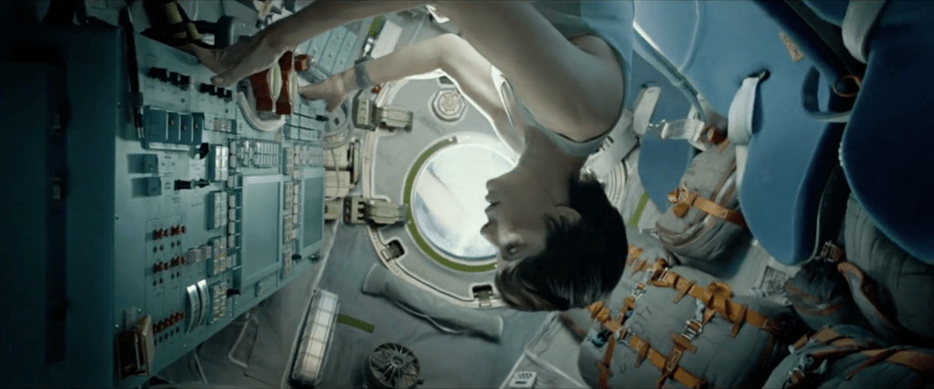 For example, when Stone encounters a sudden fire on the International Space Station, the CGI effect fills a short period with dramatic visual effects shots. Stone floats and escapes in various orientations, and the sense of space and orientation is blurred and weakened, so that the viewer may experience spun around.