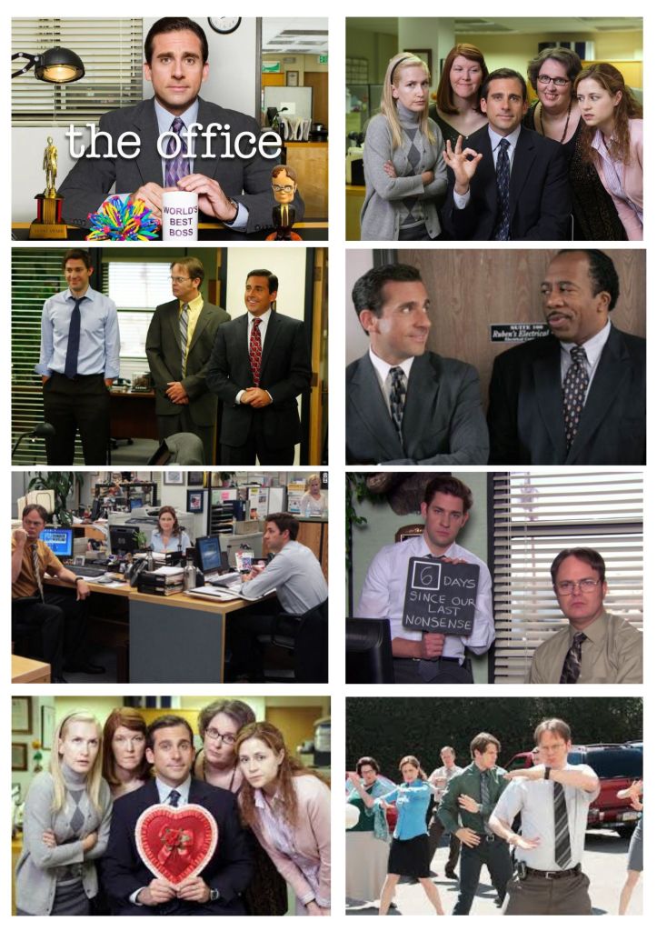 An example of binge-watching, and also a personal favourite, is the famous U.S. version of The Office. With all 9 seasons available to watch at any time, one can spend their weeks binge-watching the series throughout the hours of the night. As seen in the collage below, there is a simple set design and aesthetic to the show, in company with easy-to-follow episodes of 20-25 minutes, with the typical ending of the episode, as often found in sitcoms. The audience gets to know the characters as though they were friends, allowing for an important relationship between the characters and the viewer.
