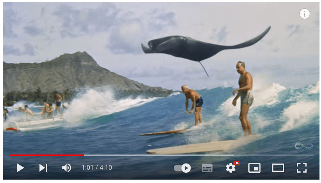 The music video for Coldplay’s Up& Up is a great example of combining music, design, animation and special effects, with over 3 million views on the day the video went live and went viral on social media. Musically, the song is very good and it’s worth noting that it features harmonies by Beyoncé, Annabelle Wallis and Merry Clayton. The music video uses surrealism and symbolism to its fullest extent, with each scene having a deeper meaning behind it, which is divided into five themes. Excluding the Coldplay scenes themselves, there are approximately 64 scenes, all of which are abstractions or adaptations of historical events and social phenomena from the 20th century. In the scene Technology, the car runs on the halo of Saturn, a scene that shows the history of human exploration of space (Figure 1). The environmental pollution scene shows McDonald’s cups straddling a river, indicating that white pollution is increasing (Figure 2). There are also scenes of people surfing, fish flying in the sky (Figure 3), and children in the Middle East walking on land while fish swim over them (Figure 4) showing the harmony between man and nature and the problems of water shortage and children in the Middle East respectively. Therefore, I think this music video by Coldplay is an excellent example of a modern music video that focuses on design, animation, and special effects.