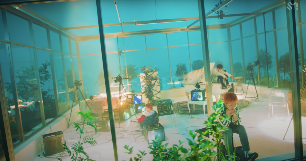 Among all the Kpop videos that reproduce Nam June Paik, the male group NCT’s work ‘NCTmentary’ (2018) is quite close to Paik’s work and develops its own worldview. In Figure 6 & 7, for example, they create an installation based on Nam June Paik’s work ‘Untitled (Piano)’(1993) and give it a new concept and meaning.