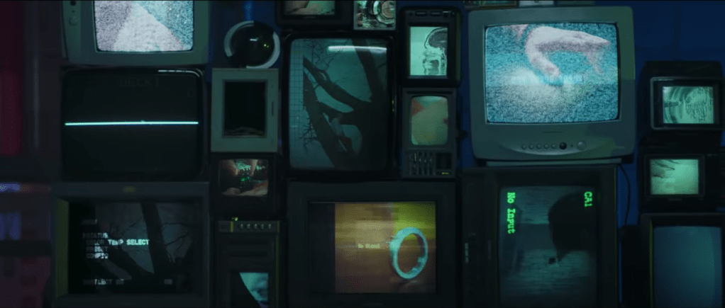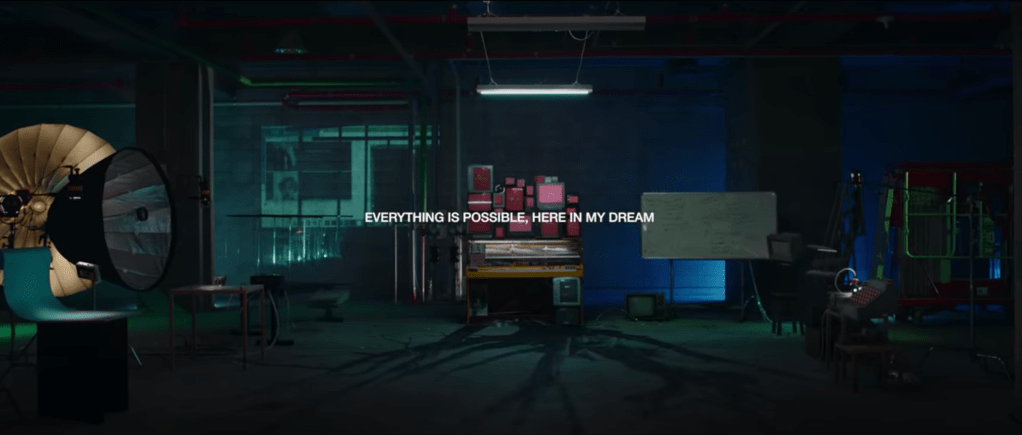 They call it a ‘visualizing apparatus’ and set it up as a machine to enter the members’ dreams. When the members play the piano, we go deeper into the dream world. The deeper dream is constructed by the images in dozens of TVs on the piano (see Figure 8). With the glitchy art effects, these seemingly unrelated and discontinuous fragmented images of spinning rings, running people, trees and so on, are presented in an unusual way through the irregularly placed TVs. This creates a poetic sensation, where the imagination is widened to an infinite extent. As the video says, “Everything is possible, here in my dream”.(see Figure 9)
