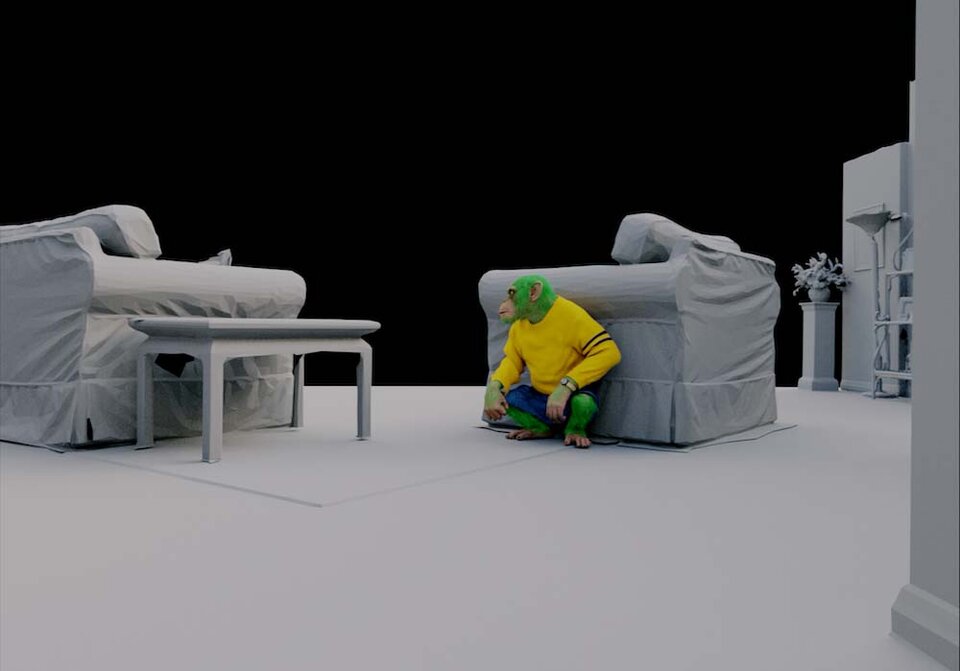 Simulation techniques are also used in Nope. Although chimpanzees do exist, the chimpanzee featured in the film is made from a vivid and complex 3D model for better presentation. Motion capture was used to add movement to the chimp so that it could interact with the film’s supporting characters. This is an example of the post-cinematic form of Simulation techniques rather than Photographic (See Figures 2 and 3).