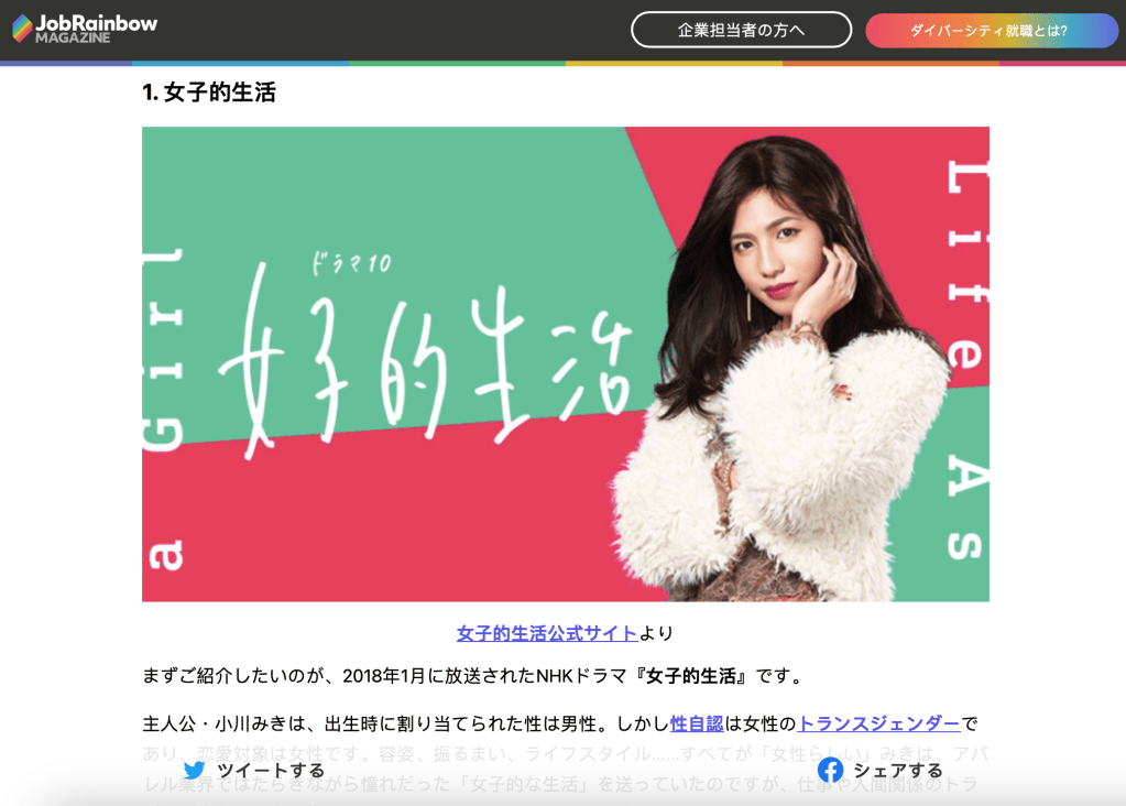 LGBTが登場するドラマ17選【日本の名作から海外作品まで】 (2023) LGBT就活・転職活動サイト「JobRainbow」. Available at: https://jobrainbow.jp/magazine/lgbt-drama (Accessed: 19 November 2023).