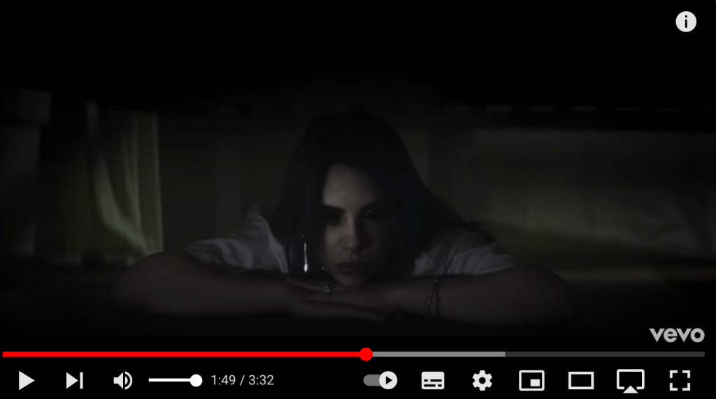 Take Billie Eilish’s, ‘Bury a friend’, as an example. The audio itself is quite artistic, with sound effects, lyrics, melody, etc., being used to create a very dark, grungy sound. From the song alone, audiences are able to imagine a narrative and analyse the songs aural elements even without the need for any kind of visual elements. However, it can be argued that the music video adds another layer of meaning and visual stimulation, which essentially enhances the song both with all the sound effects the audience can hear, and in its lyrical value. Vernallis (2013: 221), says that music video performance might provide us with the “same amount of intimacy and realism as cinema”, which I would say is evident in ‘Bury a friend’. From the costumes, lighting, camera angles, and overall performance, to the audio itself, both mediums work together to evoke specific emotions within the audience. By itself, the song is able to create a very dark and unsettling atmosphere, however the music video adds an additional cinematic element which emphasises the lyrics and the underlying metaphors which some audiences may not have considered before, essentially making the song more compelling. With the music video, the lyrics become ‘real’, and audiences are able to visualise the artists intentions and potentially feel the same emotions as they did with the song itself.