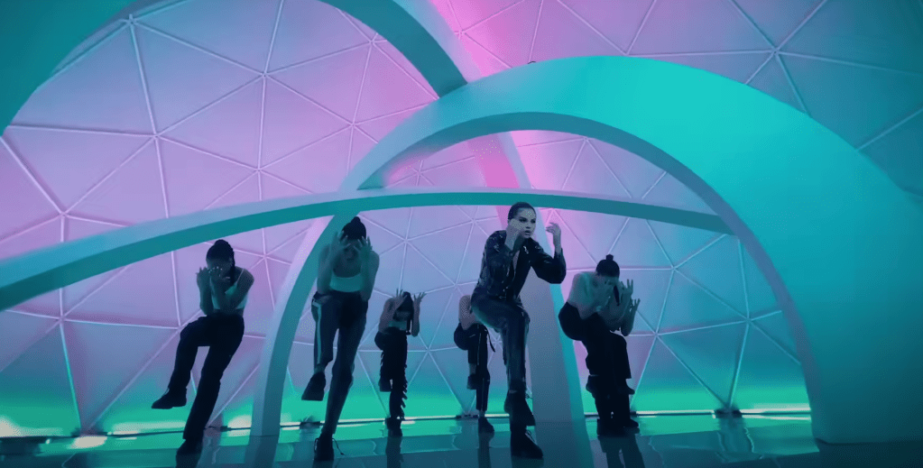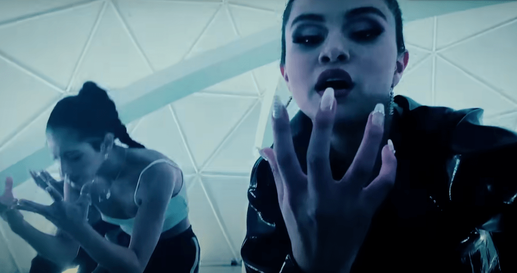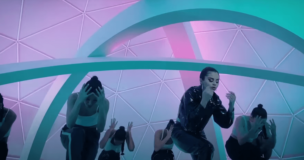According to Vernallis, the implementation of DI (digital intermediate) employ offer directors flexibility in framing and editing (Vernallis, 2013:218). For instance, during my fourth viewing of the music video, at 2:16 seconds, I noticed a shift in angles facilitated by digital cameras, not effects. This was discernible when playing the video at 0.25x speed. There were five shots of Selena and her team from slightly different angles that looked like a glitch at first. This scene evokes a sense of wholeness and freedom in expression, portraying them from various angles and embracing their imperfections in alignment with the lyrics “wasn’t wrong, wasn’t right, what a thing to be human” (Gomez, 2020).