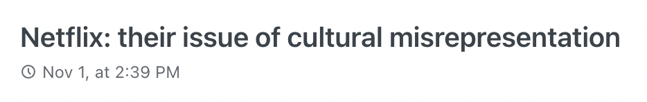 Netflix is an American subscription video on-demand streaming service and it has successfully over the years attracted an international audience by creating a diversified library of content and offering a wide range of shows and movies that cater to different cultural preferences and languages. However, because it is an American streaming service, the international shows that are on there tend to look at a country’s culture through the American lens which in terms becomes a misrepresentation of the culture. This can be problematic in terms of how the people with that culture perceive themselves when watching this.