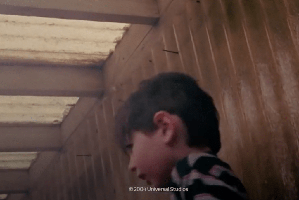 In the film, the adult Joel remembers the scene of playing in the rain outside the house when he was a child, and suddenly it pours down in the room, which changes into two images of the young Joel hiding under the shed outside the house and the adult Joel burrowing under the table to hide from the rain, and after the repeated interspersed appearances, the space of the rain inside the house shifts to the childhood Joel’s house. The image structure of the end of the previous space is converted into the opening image of the next space, which also has the same elements of image structure. The human brain has a self-association function for visual residual images, and even two completely independent spaces and times are connected without feeling abrupt.