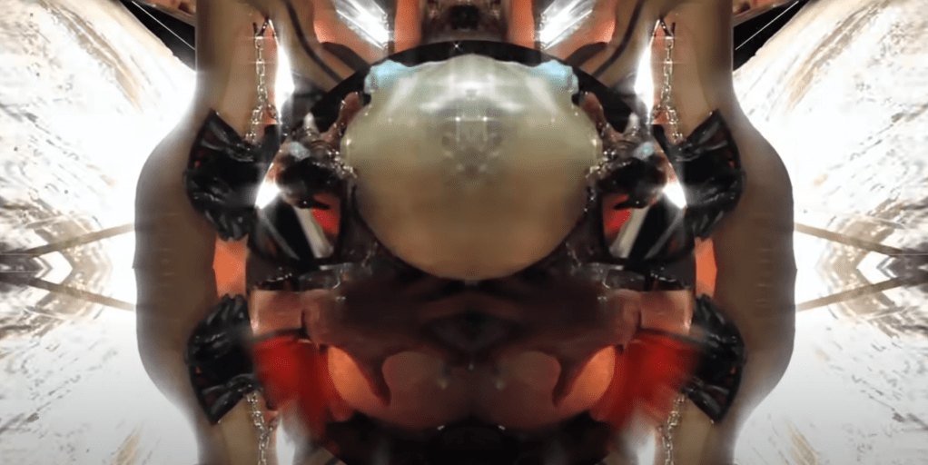Gaga uses kaleidoscopic effects when her body splits into multiple shards that mirror each other. In the fusion of bodies and separation, the construction of her image is divided into conflicting parts. These images serve to tear the binary view of gender and sexuality apart and embrace fluidity.
