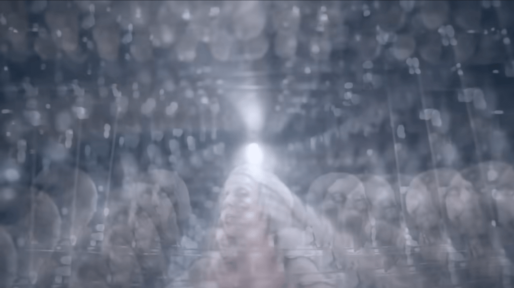 Gaga takes us to another world and tells the story of the creation of an extraterrestrial race that “bears no prejudice, no judgment, but boundless freedom.” She sits on the throne, giving birth to a “new race within the race of humanity.”