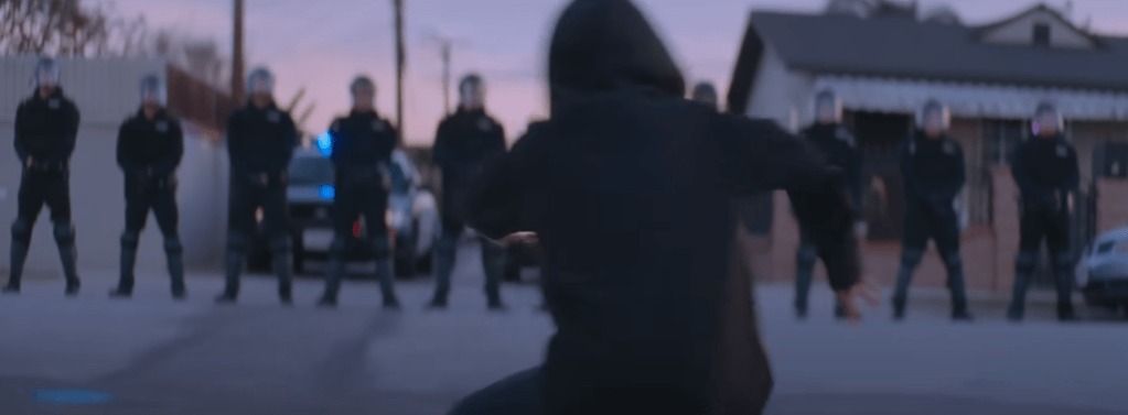 The Formation edit incorporates jump cuts, fast scene transitions, and slow motion. There is a sense of urgency conveyed by the jump cuts and rapid changes, as Beyoncé is keen to expose the disdain and injustice directed against Black people. The slow motion highlights the strength of certain scenes like Beyoncé standing in front of a FEMA truck or surrounded by dancers, which draws attention to the defiance in her posture or eyes.