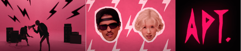 Music video production was revolutionized by the advent of MTV in the 1980s (Vernallis, 2013). In the 21st century, the rise of platforms such as YouTube, distribution and consumption of music videos also underwent fundamental changes. Music videos like “APT.” are no longer subject to web standards or TV schedules. Instead, they thrive in a fluid digital environment.