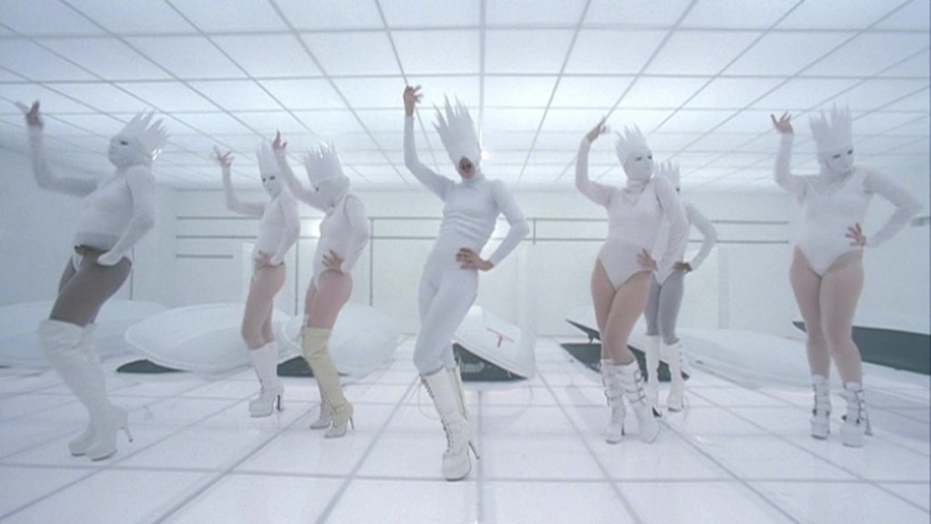 In Bad Romance, Lady Gaga employs the aesthetic to form a critique of how female pop stars are commodified in the music industry. There are many sequences in the music video that highlight this narrative or at least, allude to it. From the industrial setting to the scene where she is being sold to the men in black (pun intended) in addition to other sequences using bullet time or the enlargement of her eyes; the digital manipulations create a synthetic aesthetic that aligns with Vernallis’ observation that music videos can resist coherence to unsettle the viewer (Vernallis, 2013). The choices in the music video showcase Gaga’s transformation from someone who is captive to a symbol of resistance.