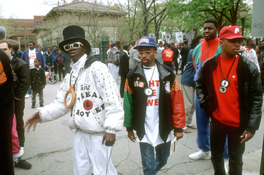 Lynskey also refers to the anthem as the ‘heartbeat of the movie’ with its surprising number of plays, including it as the opening, which embeds it in the films political direction. Lee also makes it the theme for the character Radio Raheem (Bill Nunn), constantly blasting it out of his boombox. His devastating death from police brutality is an upsetting yet powerful embrace of the anthem where people were prepared to fight to their last breaths for justice. The consistency of outspoken surrounding people during these events is a powerful reflection of the importance of communities who refuse to remain quiet at times of government.