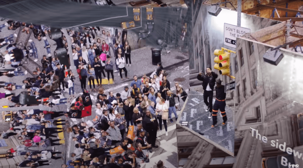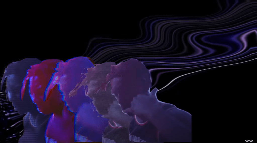 The ‘glitches’ in the editing as they cut between scenes and overlay surreal effects onto the characters within the video help fragment and destroy any sense of narrative there may have once been, reflecting the chaos and fast paced nature of modern urban life, as well as the sense of energy within the song. Shaviro’s concept of the post-cinematic effect is shown to be prevalent within Playboi Carti’s ‘Magnolia’, through the disruption and fragmentation of imagery. The ‘Magnolia’ music video challenges any traditional concept of visual unity and coherence between the narrative of the visuals and the audio and thus is clearly seen to disrupt conventional perceptions of space and time.