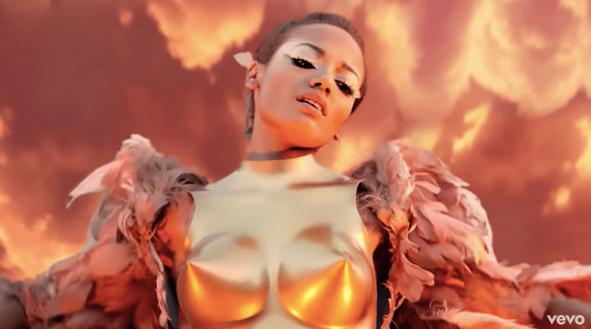 Kanye’s ‘Runaway’ embodies the fusion of artistic aesthetics and film production while illustrating symbols and representation. Railton and Watson (2011) explore how race and gender are expressed in music videos, focusing on racial and gender coding. Evident in ‘Runaway’, Kanye utilises colour contrasts as a societal metaphor. The mythical creature is dressed in golden feathers while situated in predominantly white settings symbolising marginalised outcasts in a bleak, materialistic society. The contrast reflects Railton and Watson’s ideas of racial coding, where whiteness is positioned as dominant and anything else is seen as disruptive and a nonconformist.