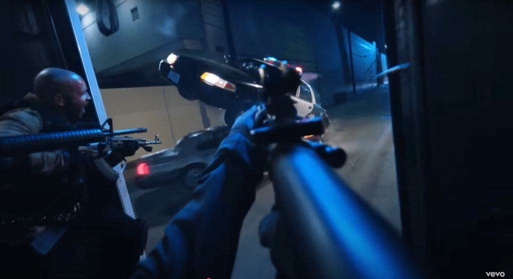 “False Alarm” adopts a first-person perspective, plunging the viewer into the heart of a chaotic bank heist. Rapid editing and dynamic camera movements heighten the sense of urgency and danger, creating a thrilling and immersive experience. While the narrative is linear, it unfolds through a series of intense action sequences, culminating in a dramatic climax. This approach is perfectly synchronized with the song’s fast tempo and constant beat changes, demonstrating how stunning visuals can enhance rather than overshadow the music. However, some might argue that this prioritization of visuals over traditional music video conventions, like lip-syncing, is what truly defines “False Alarm” as a post-cinema piece. In contrast to music videos that were released around the same time such as Carly Rae Jepsen’s “Call Me Maybe,” which focus on performance and lightheartedness, “False Alarm” challenges expectations and showcases the potential of music videos as a powerful storytelling medium. Proving Railton and Watson’s theory that music videos can be categorised into four different categories or genres: “pseudo-documentary, art, narrative and staged performance”