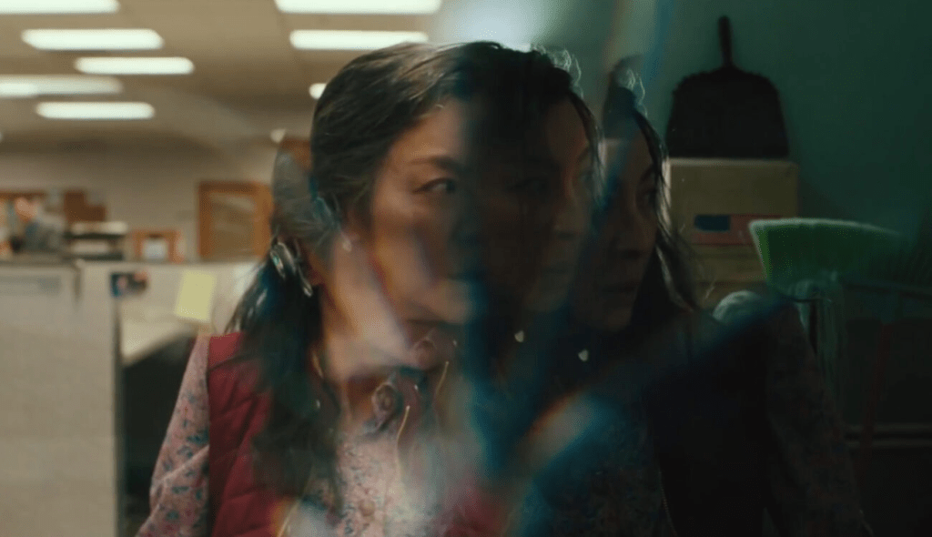 Post-cinematic affect also speaks to the film’s exploration of broader cultural anxieties. Evelyn’s disorientation confronting infinite versions of herself mirrors the precarity of life in a world saturated with endless possibilities and pressures. Each universe offers new opportunities and regrets, heightening the emotional stakes without offering resolution. This embrace of ambiguity and open-endedness aligns with Shaviro’s idea that post-cinema thrives on uncertainty.