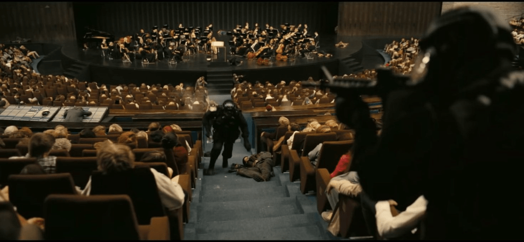 For much of the film, time is inverted, resulting in a confusing and convoluted combination of both forward and reverse timelines. Not only does this concept allow for complex action sequences but also narratives that require the viewer to watch the film multiple times in order to fully grasp, demonstrating perfectly the way in which post-cinema allows for classic, regular concepts to be repurposed and reshaped into something far more intricate and interesting. Furthermore, the use of this complex temporal structure, provides these non-linear narratives that require a new form of constant audience engagement, otherwise the viewer could get lost in the film, simply as the narrative does not conform to that of traditional cinema.