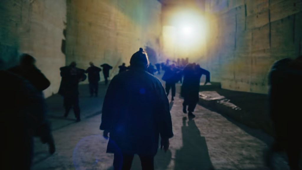 However, from the perspective of narrative in Hollywood films, this work is quite lacking in that regard. The movements of the dancers in this video could be said to be symbolic, or they could be seen as showing the dynamism of physical movement itself (the choreography for ANIMA was done by Damien Jalet, a master of contemporary dance). According to Anderson, he asked Tom Yorke to move like Chaplin or Buster Keaton (Yalcinkaya, 2019). In fact, Tom Yorke moves around in a dystopian urban space in a comical and dynamic way. In this kind of space, the viewer is drawn into a fantastic world through the combination of Tom Yorke’s dance, the symbolic lyrics and singing of ‘Not the News’, and the inorganic yet three-dimensional electronic sounds.