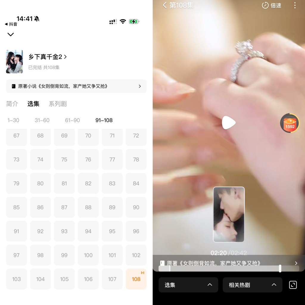 (As shown in the picture, Chinese short dramas typically contain a large number of episodes. A single series often includes more than 80 episodes, but each episode usually lasts only two to three minutes. Within this short duration, there are often one or two major plot twists or emotional triggers designed to maintain viewer engagement.)